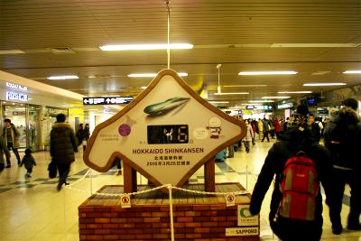 ![]() 2016−3−26 北海道新幹線開業 あと46日のカウントダウンがコンコースに表示 |