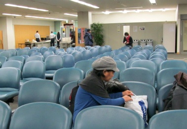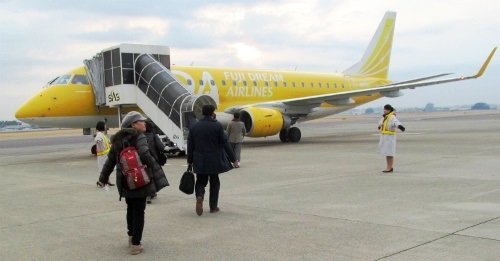 ![]() コンビニで朝食を買い空港で朝食です。 JALとFDAの共同運航フライト07:15小牧 待合室も空いていた。 |