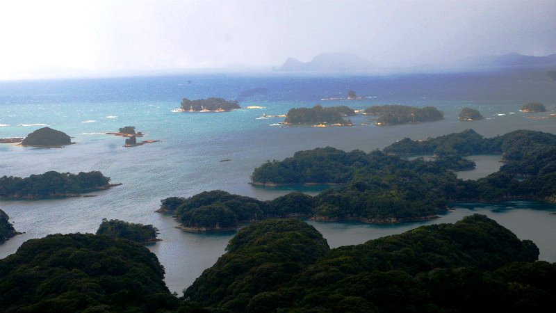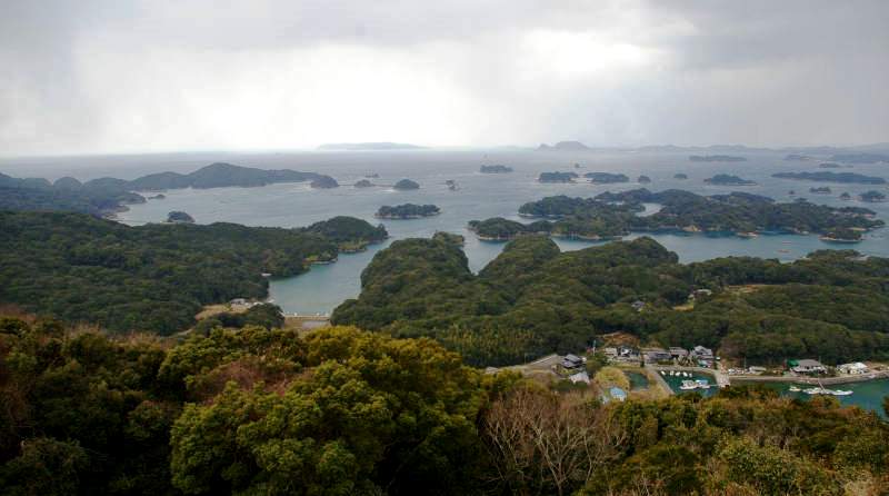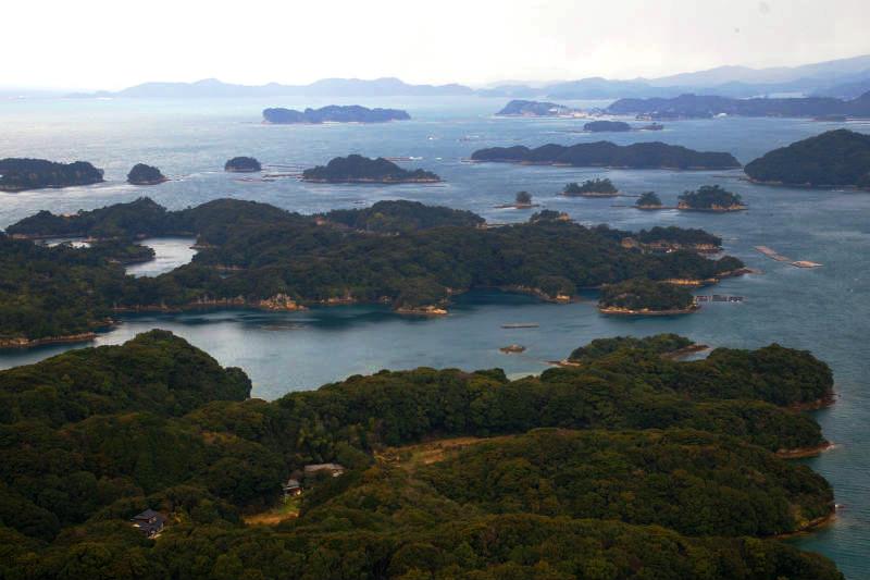 ![]() ![]() 佐世保港外から北へ25キロ、平戸瀬戸まで連なる大小およそ208の島々を九十九島といい、島の密度は日本一と! |