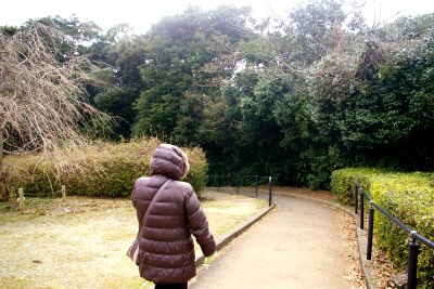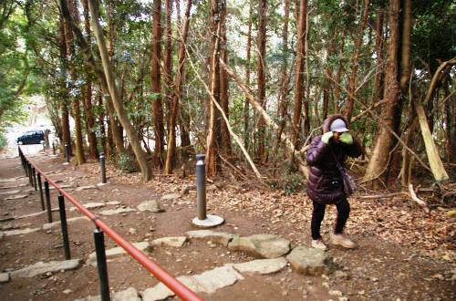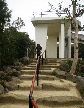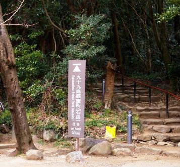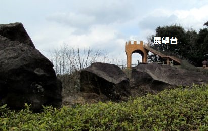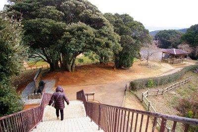![]() 標高191m石岳頂上にある展望台へ落ち椿を眺めながら登ります。 |