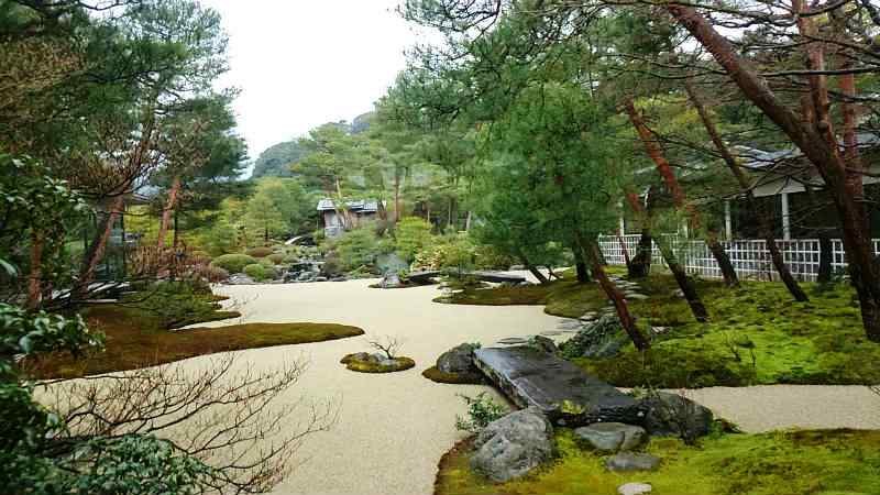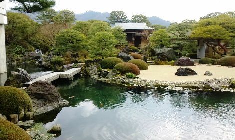 ![]() 枯山水庭をはじめ、5万坪に及ぶ庭園は、四季折々にさまざまな表情を醸出し、借景の自然の山々との調和! |