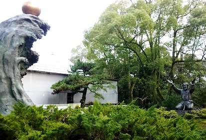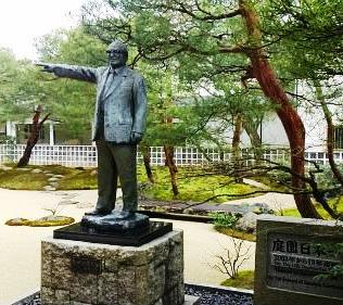 ![]() 足立美術館 創設者足立全康の銅像 足立全康は明治32年(1899)2月8日、能義郡飯梨村字古川(現、安来市古川町:美術館所在地)に生まれました。小学校卒業後すぐに、生家の農業を手伝いますが、身を粉にして働いても報われない両親を見るにつけ、商売の道に進もうと決意します。14歳の時、今の美術館より、3kmほど奥の広瀬町から安来の港までの15kmを大八車で木炭を運搬する仕事につきました。運搬をしながら思いついたのが炭の小売りで、余分に仕入れた炭を安来まで運ぶ途中、近在の家々に売り歩き、運賃かせぎの倍の収入を得たことがいわば最初に手掛けた商いといえます。その後紆余曲折、様々の事業を興し、戦後は大阪で繊維問屋、不動産関係などの事業のかたわら、幼少の頃より興味を持っていた日本画を蒐集して、いつしか美術品のコレクターとして知られるようになっていました。また若い頃から何よりも好きであったという庭造りへの関心も次第に大きくなっていったのです。そしてついに昭和45年、71歳の時、郷土への恩返しと島根県の文化発展の一助になればという思いで、財団法人足立美術館を創設しました。 足立美術館 HPより |