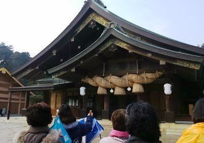 ![]() 足立美術館から>2時間のバス移動>島根県出雲市にある神社の出雲大社に着きました |