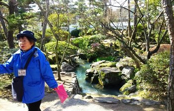 ![]() 舟に乗り優雅な時間を過ごす人も・バックの建物は大原家の本宅と別荘 |