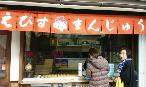 ![]() えびす商店街を散策したり、饅頭をほおばったり・・・ |