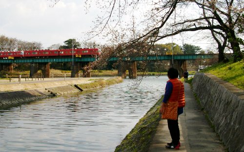 今日は早咲きの枝垂れ桜が 咲いていた。水源公園内を流れる矢作川右岸には、約450本の桜が植えられています。 満開の写真は豊田市環境協会のHPより |