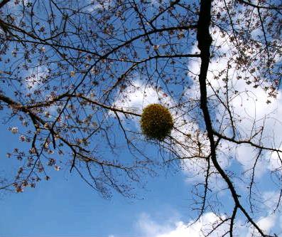 ![]() 空を見上げたら!何だろう?鳥の巣・枯草・・・よく見ると寄生しているようだ。 花も咲いていないし疲れたので蒲郡へ行く事に。 |