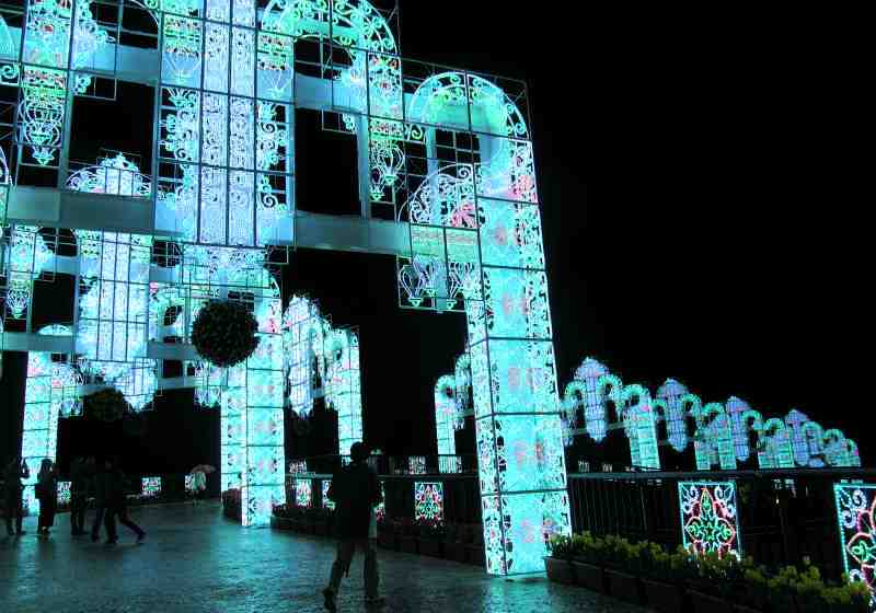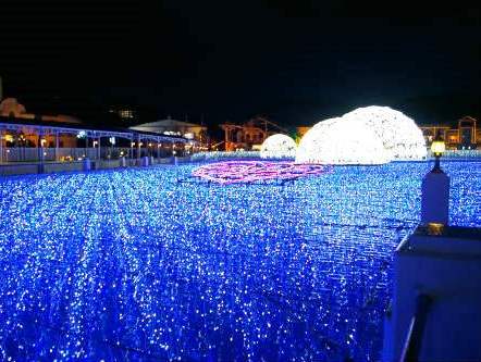 ![]() 神戸のルミナリエに似た100万球のイルミネーション『幸運のレインボーアーチ』をくぐり、渡り終えると・・・ |