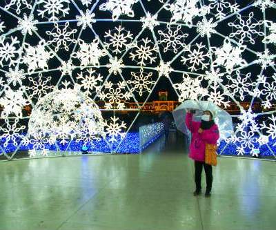 ![]() イルミネイションの海を渡りスノープラネットへ進む |