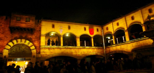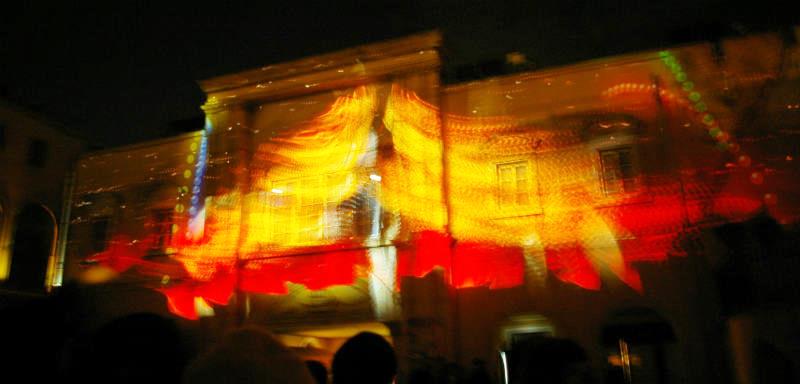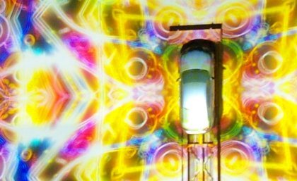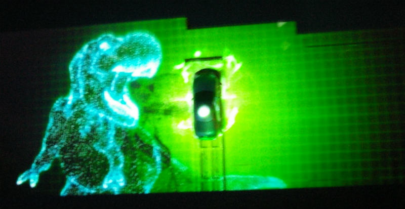 ![]() 18:45のカーアクションのアメイズ 動く車に近未来的なマッピングが大音響と共に始まった。 |