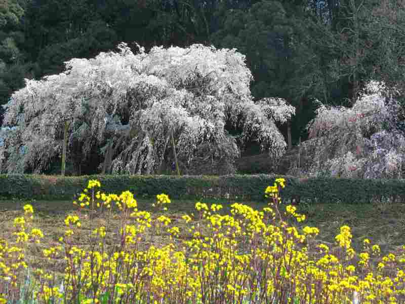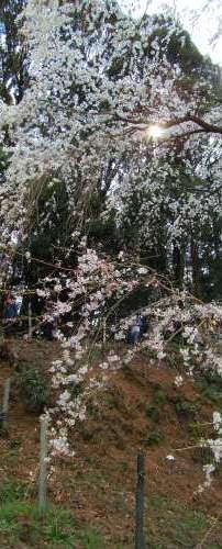 ![]() ソメイヨシノより早く咲き始め、高さ17mから花が流れ落ちるように咲き誇る。 |