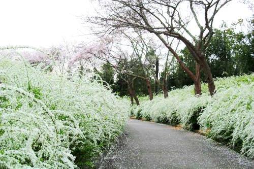 ![]() 真っ白な雪柳と桜の競演でしたが、以前来た時より桜の木が貧弱になっていたのにがっかり・・・ |