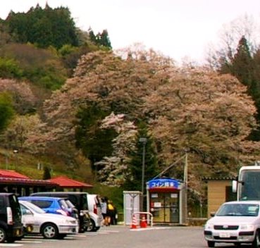 ![]() 道の駅からほど近い『合戦場のしだれ桜』は三春滝桜の孫桜であり、樹齢約170年! ここも葉桜になっていました。 |