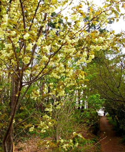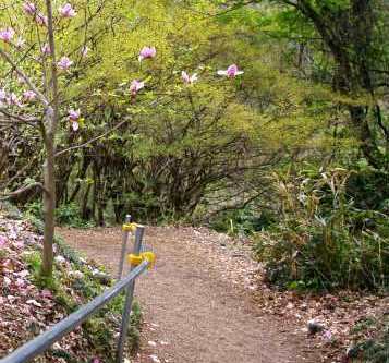 ![]() 駐車場から案内の矢印に沿って花見山公園まで歩いていきます。 ヤマブキ・紫モクレン・ハナミズキ・・・・ |