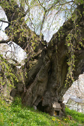 ![]() エドヒガン系のベニシダレザクラ:樹齢1000年 |