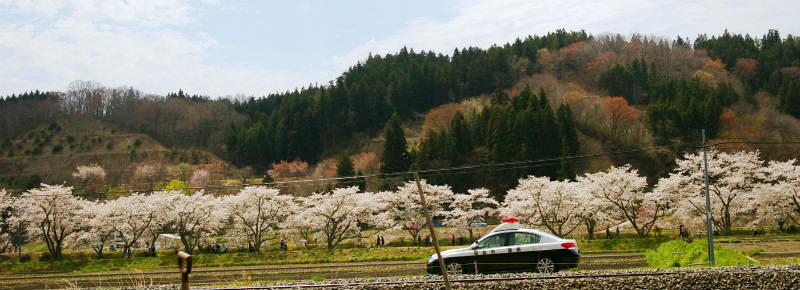 ![]() パトカーも花見のパトロール |