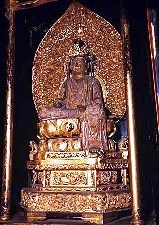 ![]() 木造観音菩薩半跏像 像高92.5cmの寄木造りで、水に映る月を見つめる姿から水月観音とも呼ばれ、 常林寺観音堂に安置されています。 南北朝時代から室町時代初期の作と考えられます。 |
