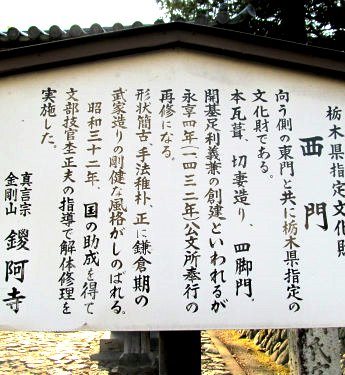 ![]() ![]() 道に迷って遠回りして 鑁阿寺(ばんなじ)の西門にたどり着きました 周囲に土塁と堀をめぐらした寺域はほぼ正方形で、約40,000uあり、鎌倉時代の武家屋敷の面影を今に伝えている。 |
