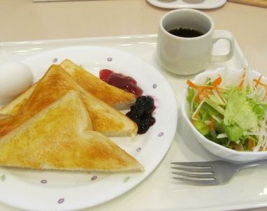 ![]() 散歩から戻り朝食:野菜とドリンクはお替り自由! スタートは足利フラワーパークへ車で20分戻る形になりました。 |