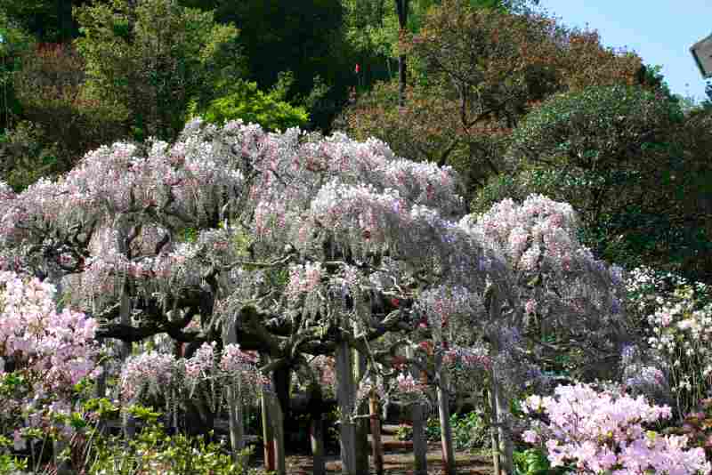 ![]() 最大の見どころは藤棚ですが、満開の藤は無く早咲きが3分咲きぐらいで残念でした。 |
