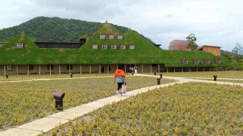 ![]() ![]() 右端のショップと綺麗なトイレの建物に向かうも、入口が良くわかりません! ショップに入ったらチケット売り場が・・・ |