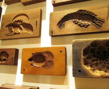 ![]() 「生どらやき」が美味しい「たねや」・・・和菓子の木型が壁一面に飾ってあります。 |