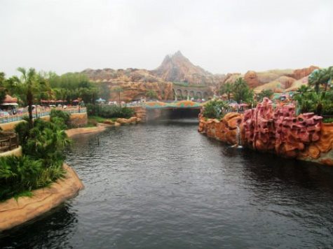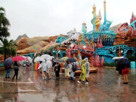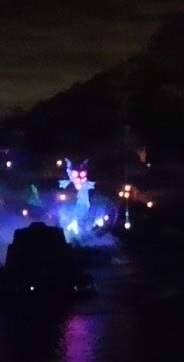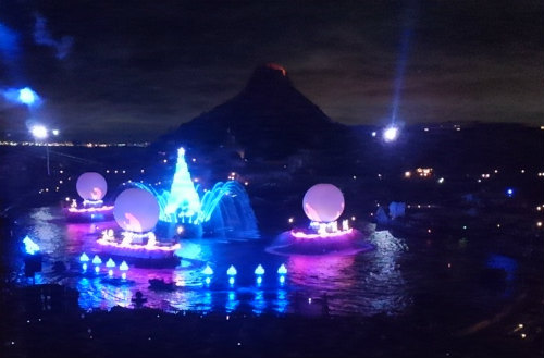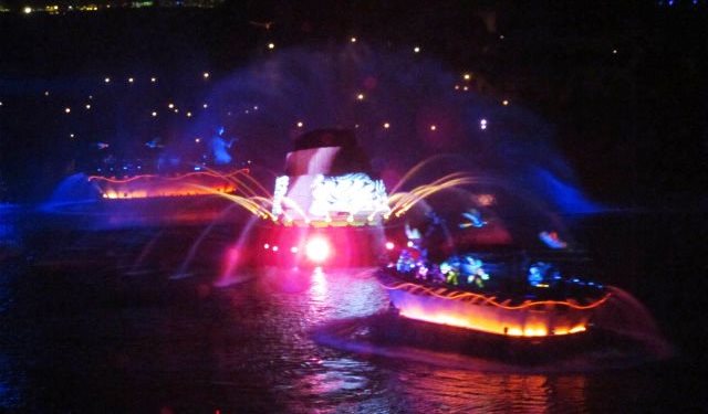 ![]() ディズニー映画のキャラクターたちが巨大なウォータースクリーンに現れる |