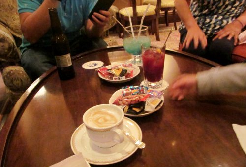 ![]() 3度目のラウンジでてんこ盛りのお菓子とおつまみでティータイム! Pm5:00〜はアルコールも飲めます。 |