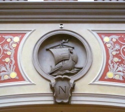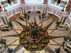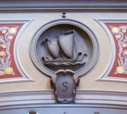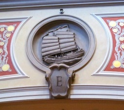 ![]() ![]() ![]() ![]() ホテルの中も美術館みたいです。 見上げると、東西南北に帆船がレリ-フと共に表示! |