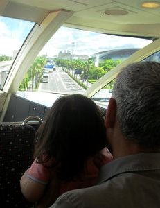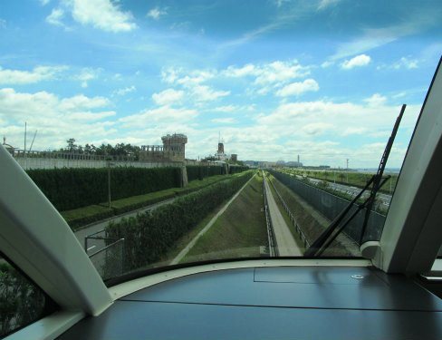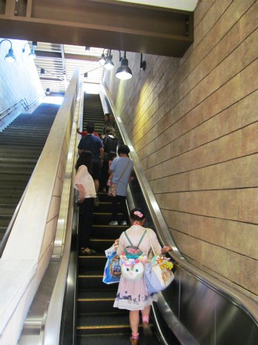 ![]() 長いエスカレーターでモノレールの駅に上がります。 私は階段で先回り・・とんとんとん! |