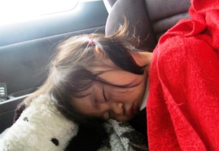 ![]() 車中の狭い空間では自由がきかないので喜んで歩いています! |