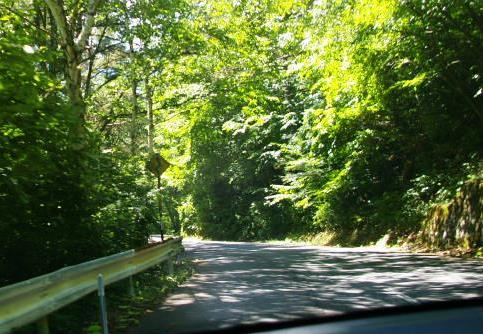 ![]() 300年余りの歴史を誇る浅間温泉を抜けてせばい狭い林道からスタートです。 |