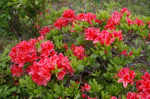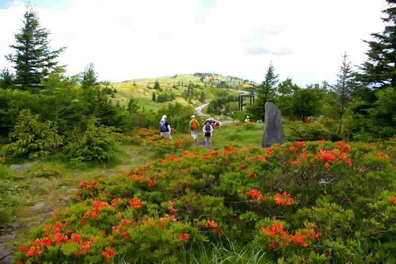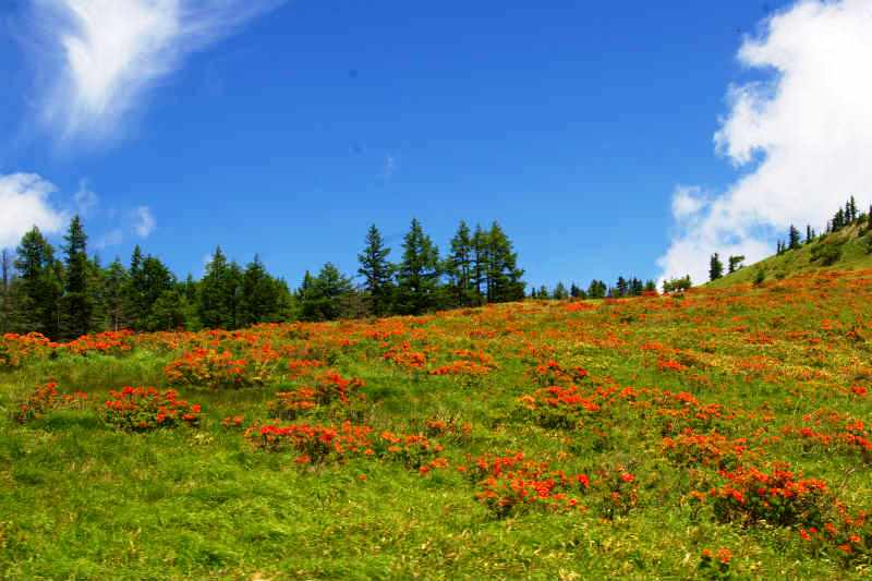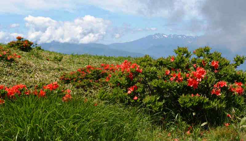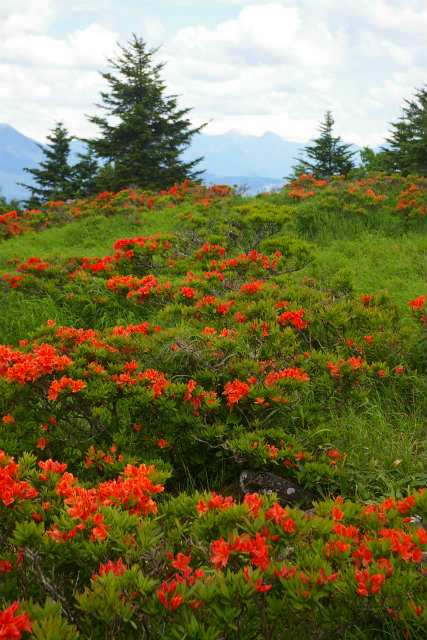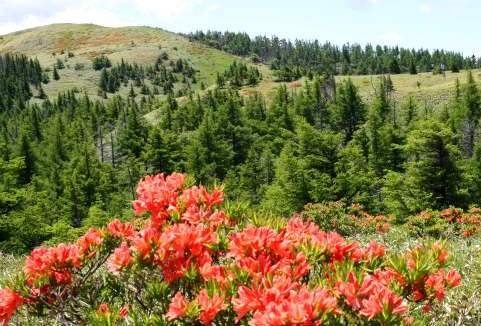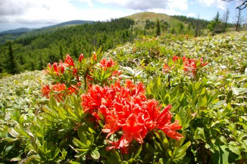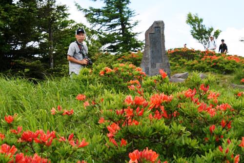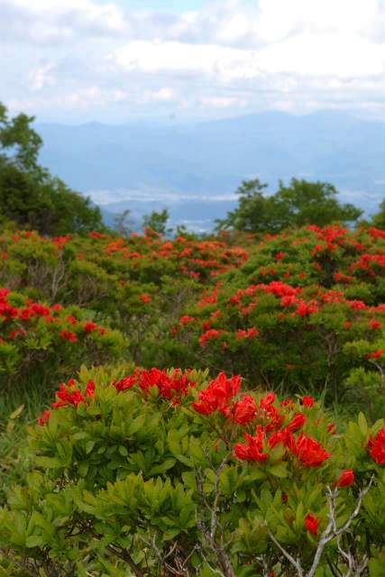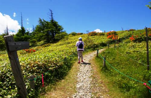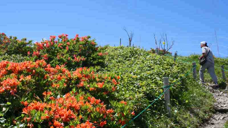 ![]() 焼山レンゲツツジ群生 から物見石山レンゲツツジまで、トレッキングしている人を多く見かける。 |