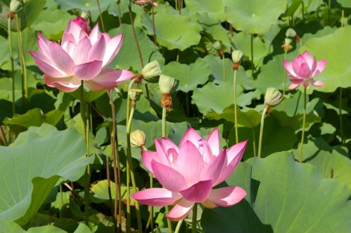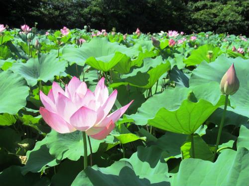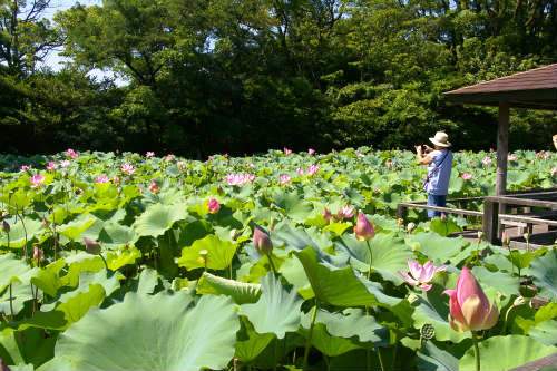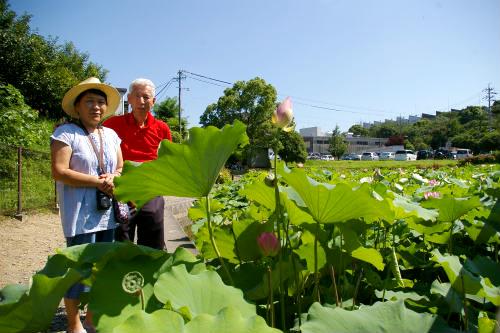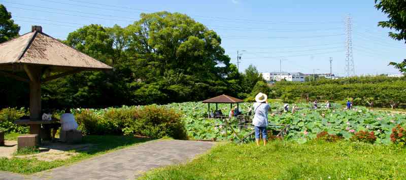 ![]() 大府市北部(みどり公園西側)に位置する北崎大池と一緒に平成12年度に整備された農業用ため池に咲くハスの花 |