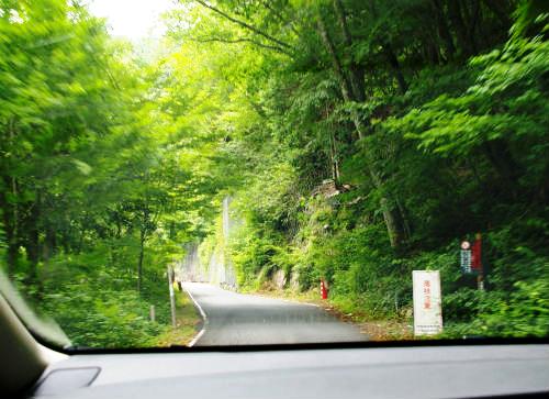 ![]() R19上松町から県道473に左折すると、だんだん道が狭くなってきた。 |