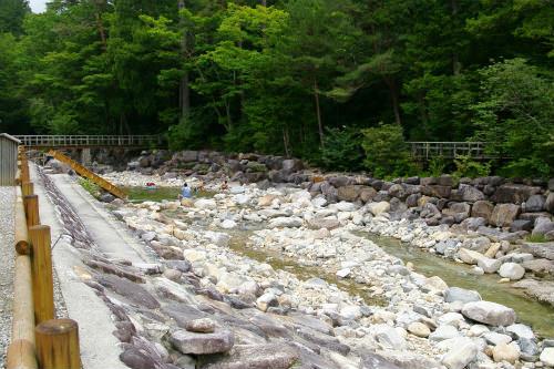 ![]() 川には天然プールがあり、子供たちが遊ぶ! 整備された『ふれあいの道』 |