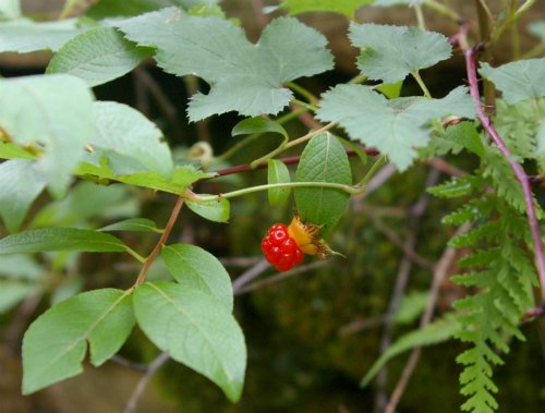 ![]() のんびり写真を撮っていたら、発車の汽笛が聞こえてきたので急いでポイントまで小走り! 足元に『きそいちご』が! |
