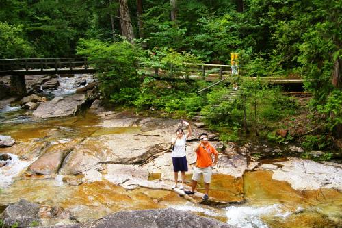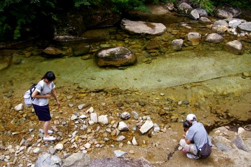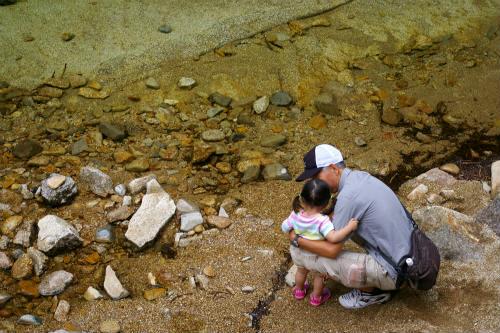 ![]() あまりにも澄んだ川なので、散策路から降りて水辺へ・・・恐々水に触れる? |