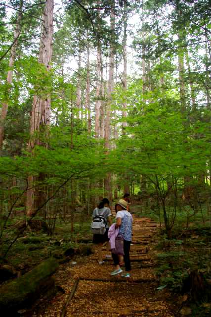 ![]() 熊に注意の看板もあったりで、物音には気を使いおしゃべりしながら歩きます。 |