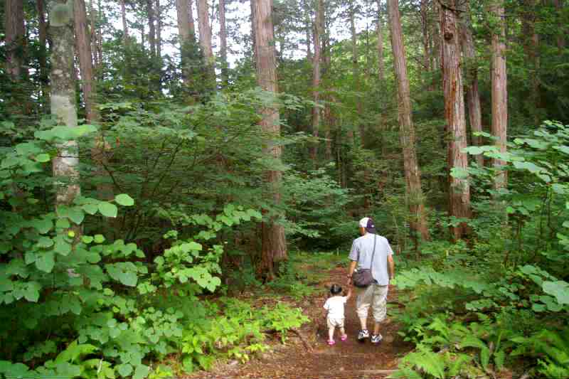 ![]() 道の駅で買った五平餅を食べてから、駒鳥コース2700mの500m程を散策することにした。 |