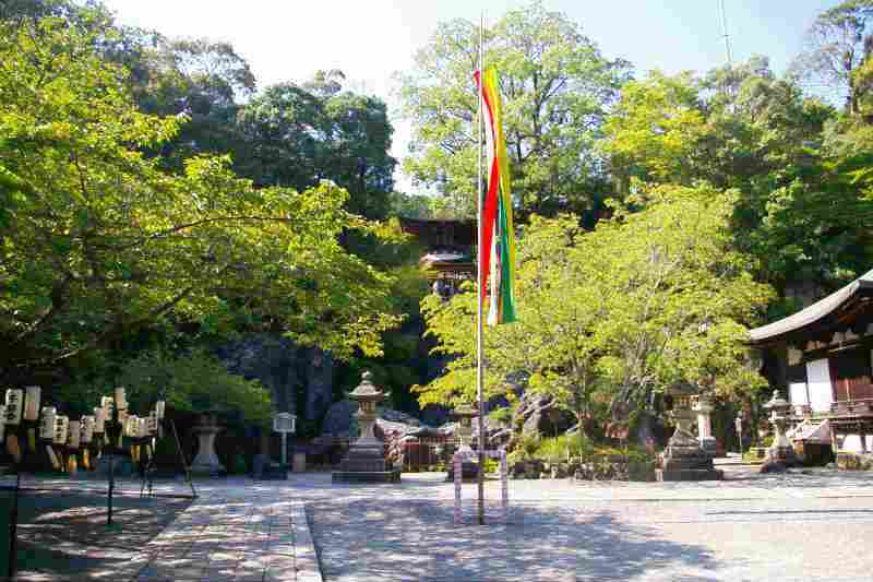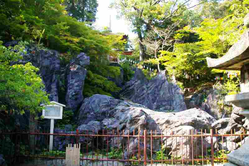 ![]() 境内の本堂(国宝)は、巨大な硅灰石(天然記念物)の上に建てられています。 |