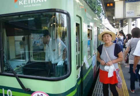 ![]() 京阪鉄道が込み合うとアナウンスが「入り口付近の方は強く押して入ってください!」 無料の見学場所は埋め尽くされています。 |