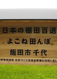![]() 飯田市千代にある棚田で「棚田百選」に認定されている。秋は金色の稲穂と休耕田に咲くコスモスのコントラストが美しい! |