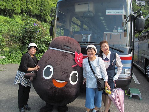 ![]() 店内は広くて・・・沢山の酢の製品が売られている!ゆるキャラクロちゃんとガイドさん |