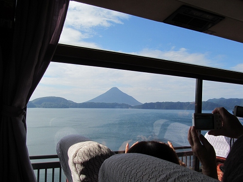 ![]() ホテルの前 バスからの開聞岳 |
