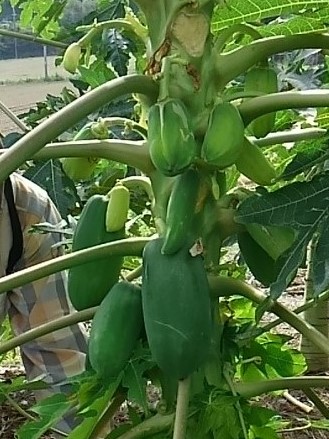![]() 『野菜パパイヤ』 3個持ち帰りだが、小さめのを選ぶ(自宅でサラダにしたが味はありません) |