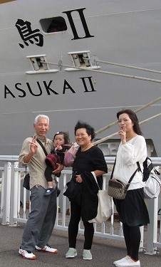 ![]() いよいよ乗船・・・16:00出港のどらが鳴り響き、五色のテープが舞う! |