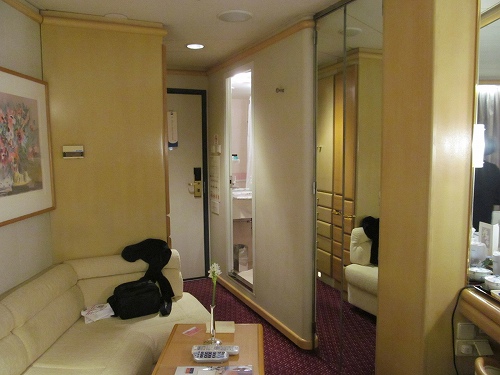 ![]() 船が太平洋に出たら波が荒く揺れだした。 船酔いしたようなので、酔い止めの薬を服用(船内でもらえます) 孫が目覚め我々の部屋に来て、DVDの音楽に合わせ、しばらく踊りまくって引き上げる!・・・この後爆睡!ZZZZZ・・・Pm10:30 |
