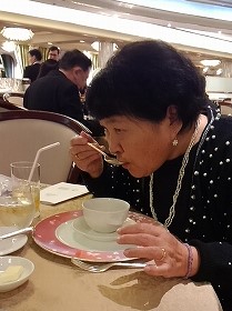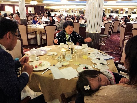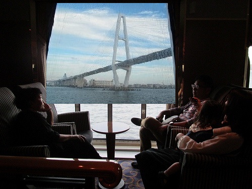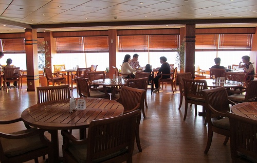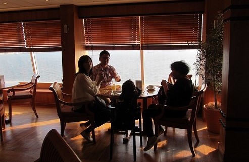![]() 出港してすぐティータイム(船内のドリンクと食事は、何回食べても無料です。) |