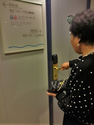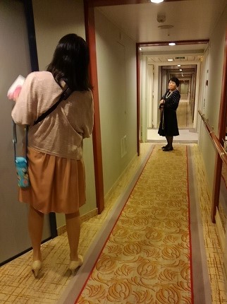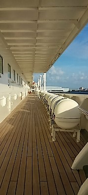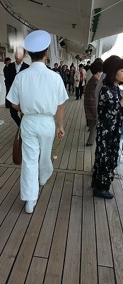 ![]() 避難訓練のサイレンが鳴り、船内アナウンスが流れ、7デッキで避難訓練に参加(代表で私が参加したら、他の人は全員参加) |